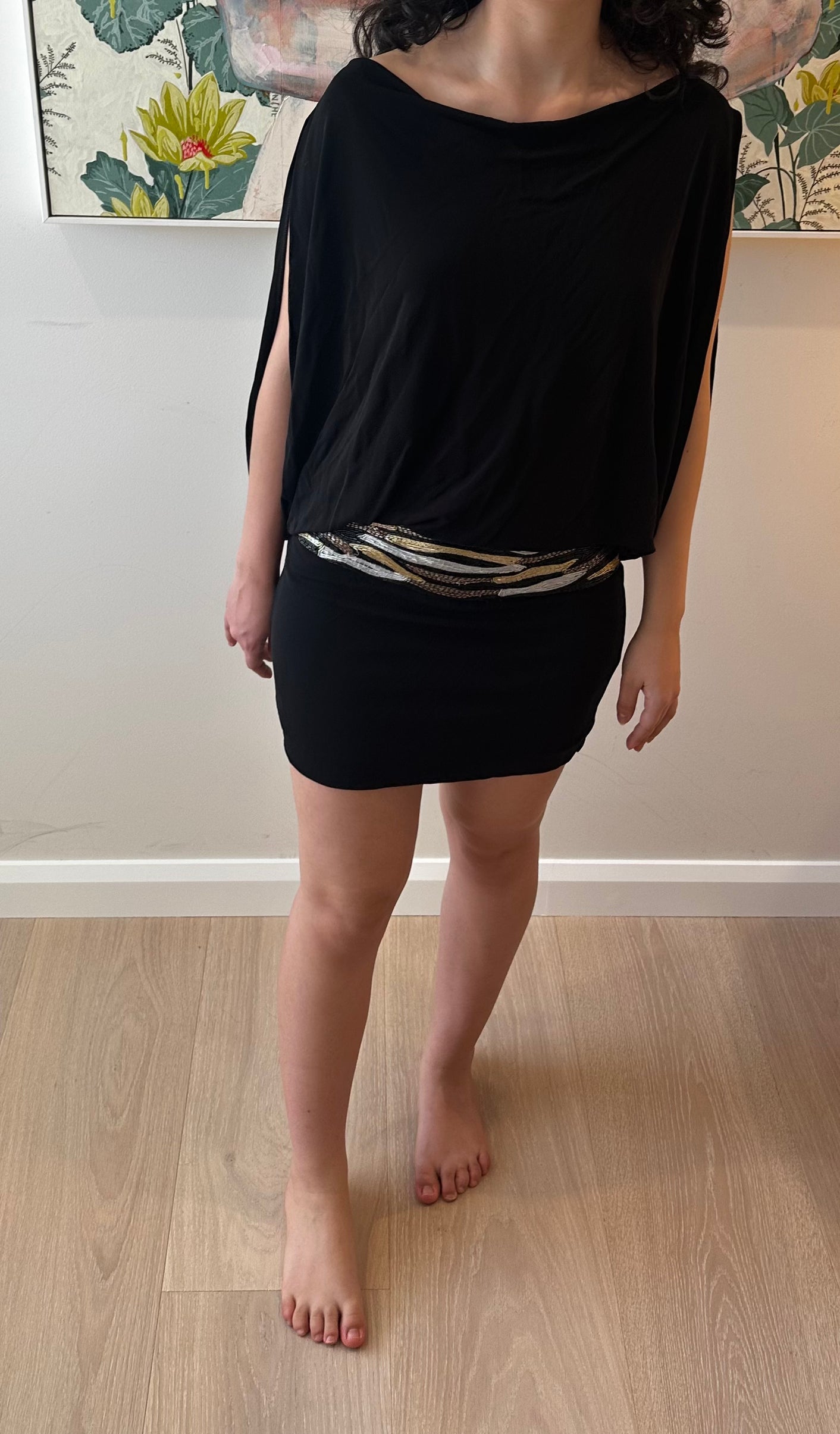 Stunning black Foley & Corinna cocktail dress - 2nd hand, in almost new condition in size x small. Backless with pink lining and a stunning beaded belt